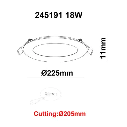 | Manufacturer Name | White label LED Downlight Round UltraSlim 18W 1450lm 840 CutoutØ205mm FrameØ220mm | |