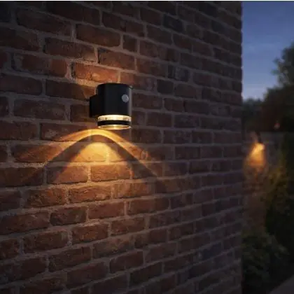 D'Lite Wall Light Solis Solar Black Up & Down - 830 Warm White | IP54 - Motion Sensor