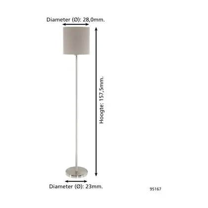 Eglo Floor Lamp Pasteri Steel Satin Nickel Taupe | IP20 - Suitable for 1x E27