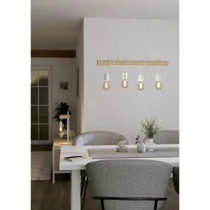 Eglo Pendant Townshend Steel White Wood | IP20 - Suitable for 4x E27