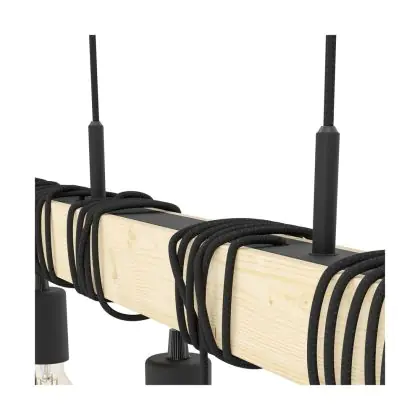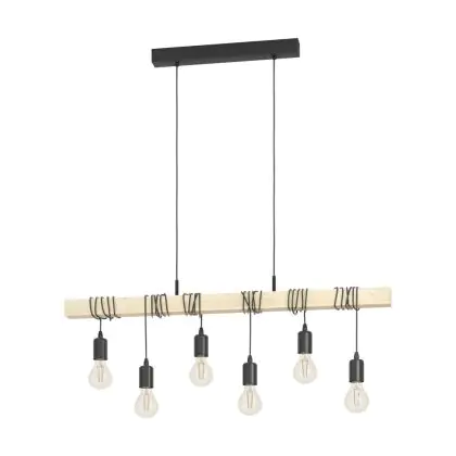 Eglo Pendant Townshend Steel Wood Black Brown | IP20 - Suitable for 6x E27