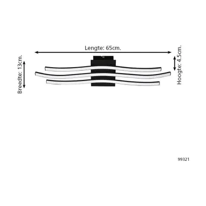 Eglo Wall and Ceiling Light Roncade 1 Steel Aluminium Black 21W 2800lm - 830 Warm White | IP20