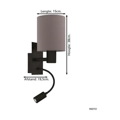 Eglo Wall Light Pasteri Steel Black | IP20 - Suitable for 1x E27
