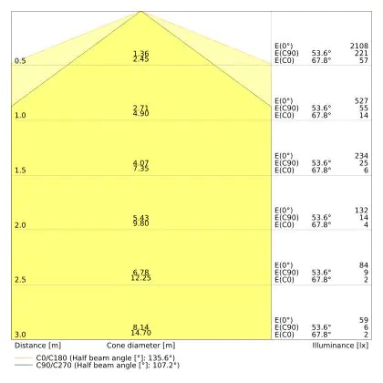 ![]() The colour code is a combination of colour rendering (CRI) and light colour (Kelvin). The first number indicates the colour rendering (1 = very poor colour rendering, 9 = maximum colour fastness). The second and third number contains the light colour. Example: the colour code 830 consists of good colour rendering (8) and warm white light (3000K). |