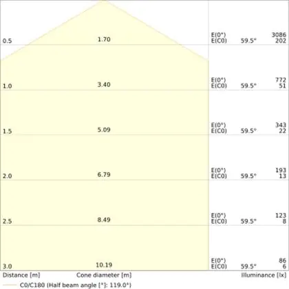 ![]() The colour code is a combination of colour rendering (CRI) and light colour (Kelvin). The first number indicates the colour rendering (1 = very poor colour rendering, 9 = maximum colour fastness). The second and third number contains the light colour. Example: the colour code 830 consists of good colour rendering (8) and warm white light (3000K). |