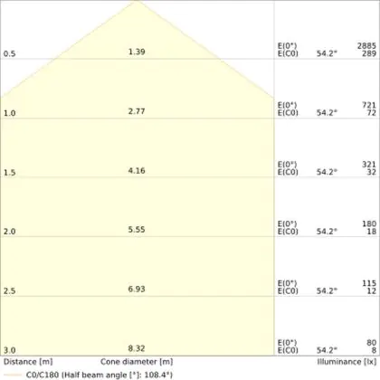 ![]() The colour code is a combination of colour rendering (CRI) and light colour (Kelvin). The first number indicates the colour rendering (1 = very poor colour rendering, 9 = maximum colour fastness). The second and third number contains the light colour. Example: the colour code 830 consists of good colour rendering (8) and warm white light (3000K). |