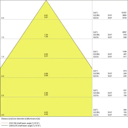 ![]() The colour code is a combination of colour rendering (CRI) and light colour (Kelvin). The first number indicates the colour rendering (1 = very poor colour rendering, 9 = maximum colour fastness). The second and third number contains the light colour. Example: the colour code 830 consists of good colour rendering (8) and warm white light (3000K). |