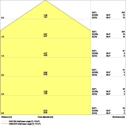 ![]() The colour code is a combination of colour rendering (CRI) and light colour (Kelvin). The first number indicates the colour rendering (1 = very poor colour rendering, 9 = maximum colour fastness). The second and third number contains the light colour. Example: the colour code 830 consists of good colour rendering (8) and warm white light (3000K). |