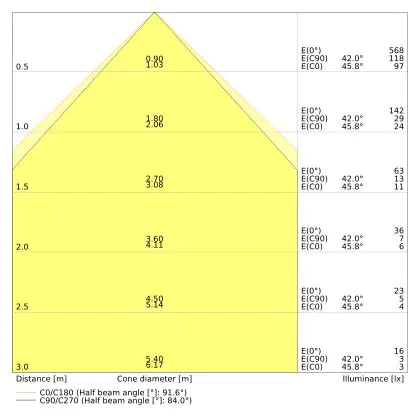 ![]() The colour code is a combination of colour rendering (CRI) and light colour (Kelvin). The first number indicates the colour rendering (1 = very poor colour rendering, 9 = maximum colour fastness). The second and third number contains the light colour. Example: the colour code 830 consists of good colour rendering (8) and warm white light (3000K). |