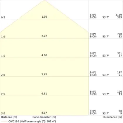 ![]() The colour code is a combination of colour rendering (CRI) and light colour (Kelvin). The first number indicates the colour rendering (1 = very poor colour rendering, 9 = maximum colour fastness). The second and third number contains the light colour. Example: the colour code 830 consists of good colour rendering (8) and warm white light (3000K). |
