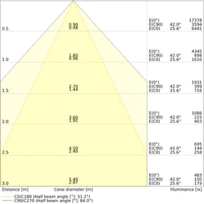 ![]() The colour code is a combination of colour rendering (CRI) and light colour (Kelvin). The first number indicates the colour rendering (1 = very poor colour rendering, 9 = maximum colour fastness). The second and third number contains the light colour. Example: the colour code 830 consists of good colour rendering (8) and warm white light (3000K). |