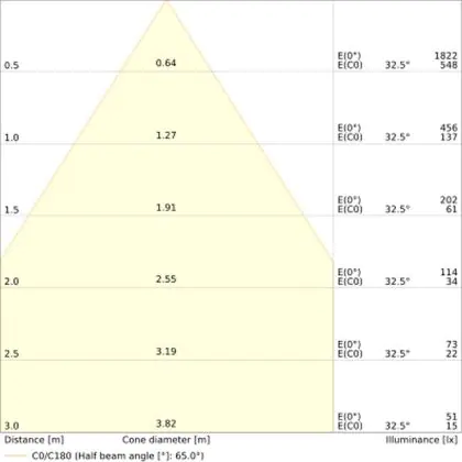 A beam angle indicates the angle of the light beam coming from a light source. The smaller the radiation angle in degrees (D), the narrower the beam angle.