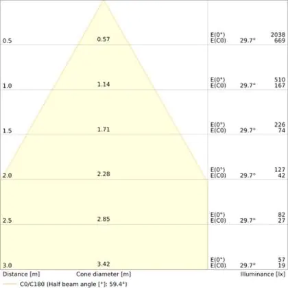 ![]() The colour code is a combination of colour rendering (CRI) and light colour (Kelvin). The first number indicates the colour rendering (1 = very poor colour rendering, 9 = maximum colour fastness). The second and third number contains the light colour. Example: the colour code 830 consists of good colour rendering (8) and warm white light (3000K). |