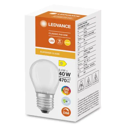 Ledvance Superior Classic LED E27 Ball Frosted 3.4W 470lm - 927 Extra Warm White | Dimmable - Best Colour Rendering