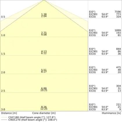 ![]() The colour code is a combination of colour rendering (CRI) and light colour (Kelvin). The first number indicates the colour rendering (1 = very poor colour rendering, 9 = maximum colour fastness). The second and third number contains the light colour. Example: the colour code 830 consists of good colour rendering (8) and warm white light (3000K). |