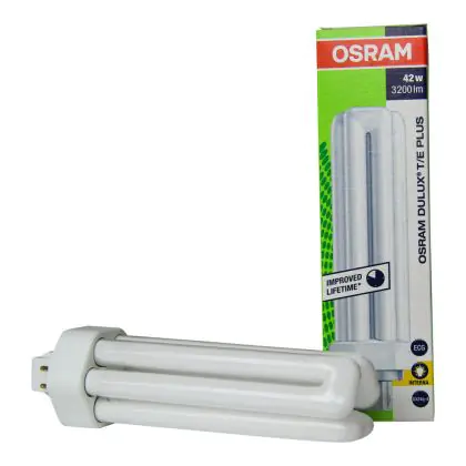 Osram DULUX T/E are energy efficient fluorescent lamps with separate power supply. These lamps must be used with a ferromagnetic ballast and have 4 pin sockets.