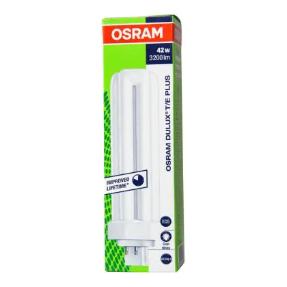 Also, the Osram DULUX T/E 42W/840 PLUS GX24q-4 Lumilux Cool Whitelifespan is very long, up to 13000 hours. These lamps are also very energy efficient, they have an energy label classified A.