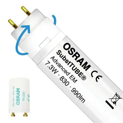 The Osram SubstiTUBEAdvanced is the perfect 18W replacer for fluorescent tubes in a fixture with a conventional ballast (recognizable by the fact that the fixture has a starter). You immediately save 42% on your energy costs after replacement.
