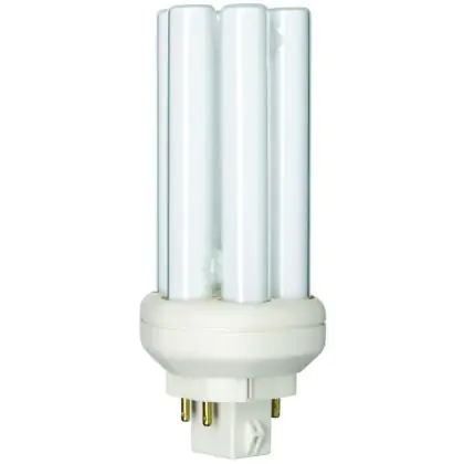 The Philips PL-T TOP 4P lamps are 4 pin socket fluorescent lamps that are very efficient for long run times. They are more efficient than 4P PL-T standard bulbs and their performance is optimized over wide temperature ranges. Each compact fluorescent lamp of this range has a base type GX24q-2 with 4 metal pins. Philips PL-T TOP 18W 840 4P lamps have a size of 1500 cm.