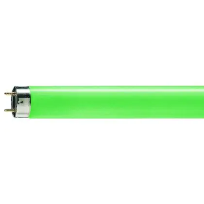 Philips TL-D Colored are fluorescent tubes of 26 mm in diameter. These tubes have the distinction of being colored. There are 4 colors: red, blue, green and yellow. Philips TL-D 58W Green - 150cm have a G13 base type and measure 151,42 cm. The color rendering index is also excellent, more than 80Ra.