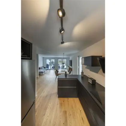 A fixture with a tiltable design makes it possible to direct the lighting specifically at an object or surface. This can play a particularly important role in shops (putting a new collection in the spotlight) or galleries (accentuating works of art). It can also influence the purchasing behaviour or interpretation of visitors.